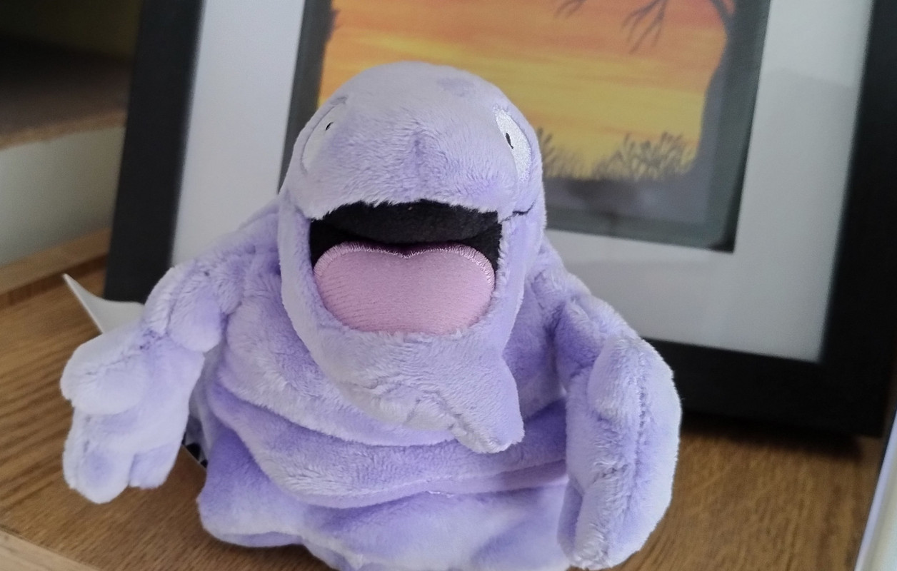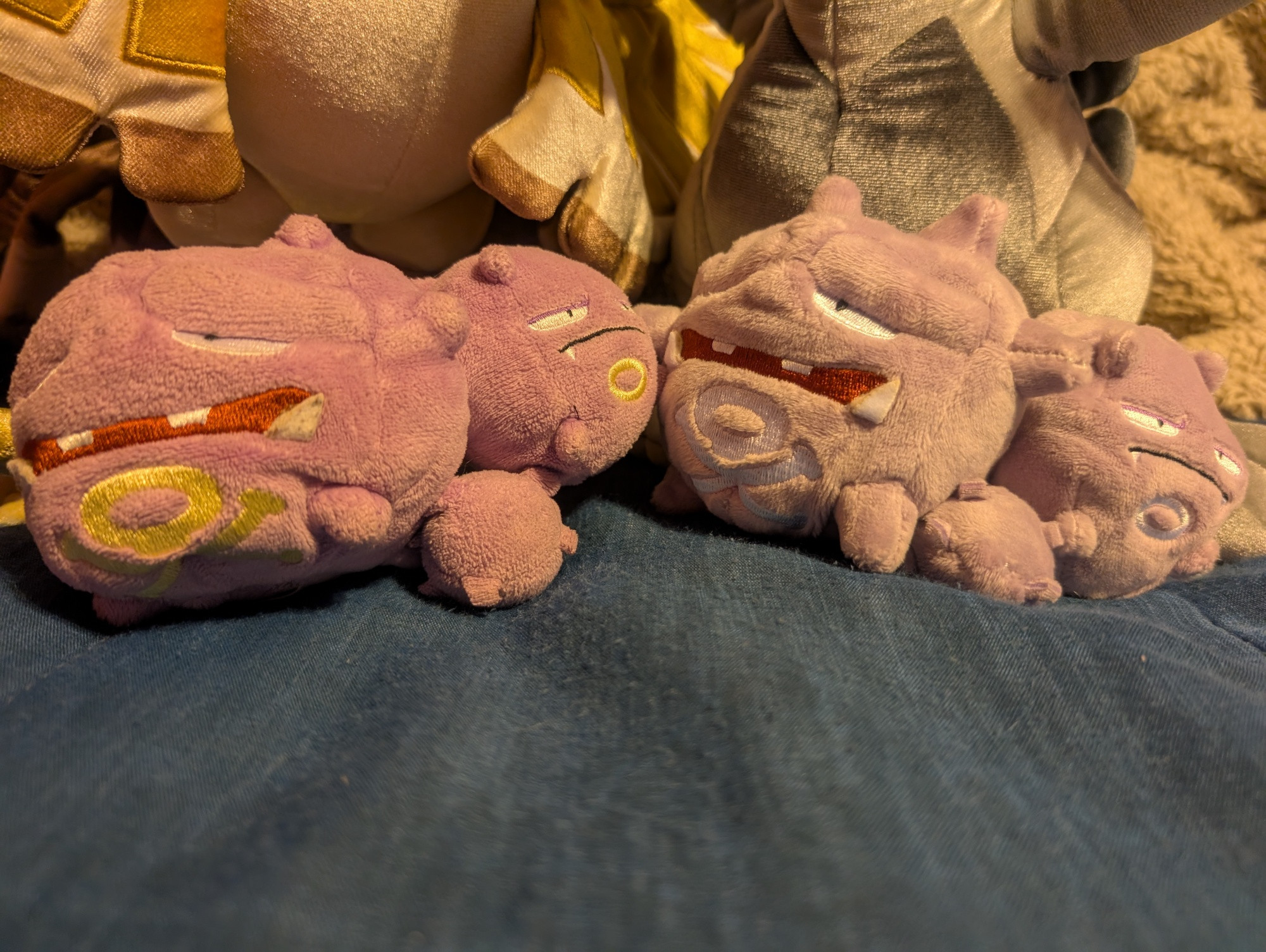 As for myself, I actually don't collect a whole lot of merch, I just don't have the finances to be doing that sort of thing. However, I have a Quagsire plushie that is incredibly near and dear to my heart. It's from the Comfy Friends line of plushies. The thing is, she's not really very presentable anymore... I've been cuddling her nonstop for upwards of four years and she is incredibly worn at this point. "To be loved is to be changed" as they say.
